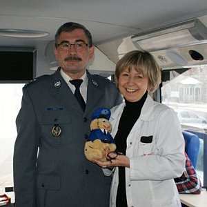 Na zakończenie mł. insp. Zbigniew Rogala symbolicznie podziękował za przyjazd do Śremu dr n. med. Barbarze Malinowskiej przekazując na jej ręce sierż. Pyrka maskotkę wielkopolskiej Policji.