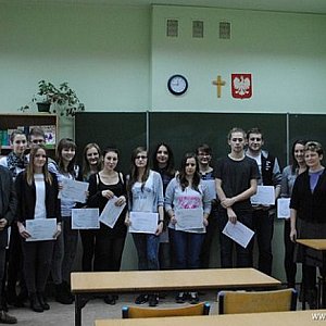 Uczniowie z EKONOMA z certyfikatemW dniu 20.11.br Dyrektor Piotr Karliński wraz z nauczycielem P. Gogolewskim i wychowawcą P. Ratajczak wręczyli klasie III EH (grupie ekonomistów) Europejskie Certyfikaty Umiejętności Komputerowych potwierdzające zaliczenie kursu EECDL.