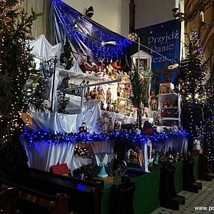 Żłóbek w kościele farnym tradycyjnie przyciągać będzie uwagę niesamowitą ilością ruchomych obrazów i scenek. Również i w tym roku są tam żywe złote rybki.