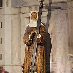 Podczas eucharystii wierni usłyszeli krótki życiorys patronki, do której zmierzali i odmówili litanię do świętej.