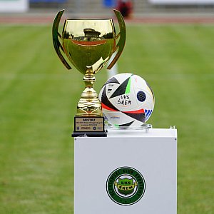 Zanim piłkarze usłyszeli pierwszy gwizdek sędziego członek zarządu Wielkopolskiego Związku Piłki nożnej Marcin Drajer przekazał prezesowi Klubu UKS Śrem Krzysztofowi Gapysowi puchar za awans do ligi wyższej.
