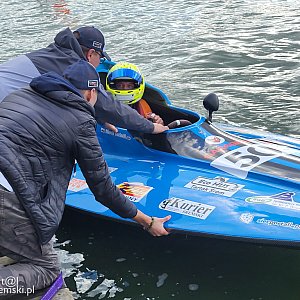 Ostatnie zawody w tym sezonie miały miejsce w Rogoźnie. W sobotę wiał bardzo silny wiatr, dlatego odbyły się tylko treningi. Natomiast niedziela okazała się bardziej łaskawa dla motorowodniaków. W klasie GT 30 w trzech startach Marcin zdobył 900 punktów (trzy razy był drugi), co w zupełności starczyło, aby po raz pierwszy w karierze sportów motorowodnych zdobyć tytuł Międzynarodowego Motorowodnego Mistrza Polski. Przypomnijmy, w roku 2022 i 2023 śremianin był wicemistrzem Polski, natomiast w tym roku zdobywa złoty medal- najwyższe trofeum w kraju.