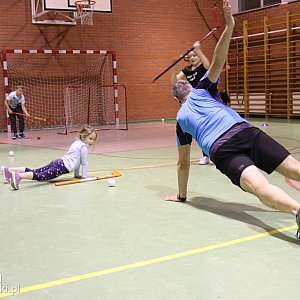 W czwartek 3 lutego zgodnie z planem odbył się pierwszy oficjalny trening. Na salę sportową Szkoły Podstawowej w Dąbrowie przybyli pierwsi chętni spróbować swoich sił w unihokeju. Trener zapoznał dzieci m.in. z prawidłową postawą i podstawowymi ruchami. Poza tym przeprowadził solidną rozgrzewkę i dał młodym konkretny wycisk!
