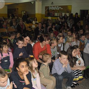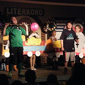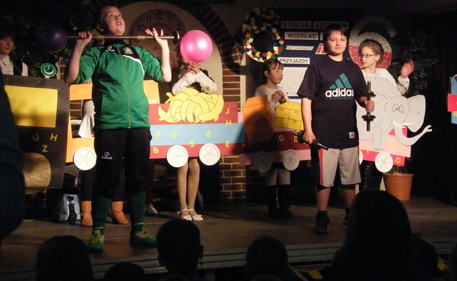 Zgromadzona w holu szkoły publiczność z niecierpliwością oczekiwała na przedstawienie w wykonaniu uczniów działających w Kółku Teatralnym. Na scenie pojawiły się dziewczynki z klas trzecich, które piosenką pt. „W Literkowie” wprowadziły wszystkich w wesoły nastrój. „Proszę odsunąć się od torów i zachować ostrożność, nadjeżdża pociąg”- ostrzegał głos z megafonu i na „stację” wjechała lokomotywa „…ciężka, ogromna i pot z niej spływa- tłusta oliwa”. Spektakl oparty na znanym utworze Juliana Tuwima, wzbudził wśród najmłodszych widzów sporo emocji. Dzieci chętnie włączyły się do wspólnej zabawy i śpiewały wraz z „aktorami” piosenkę „Jedzie pociąg z daleka”. Część artystyczną przygotowały panie: Małgorzata Worsztynowicz, Agata Kociucka, Iwona Baran i Grażyna Kozak.