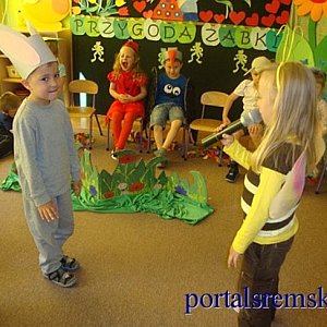 Przedszkole, które ma profil artystyczno-językowy, co roku realizuje cykl „Dzieci dzieciom” polegający na wystawianiu raz w miesiącu przedstawień przez każdą grupę. Tak też było w środę 21 maja, kiedy to dzieci z grupy czterolatków KOTKI wystąpiły przed swoimi kolegami w teatrzyku „Przygoda żabki”. Przedszkolaki w prosty i interesujący sposób opowiedziały, że nie warto samemu, bez opieki wychodzić z domu, zawsze trzeba słuchać rodziców, a przede wszystkim okazywać im szacunek. Na uwagę zasługiwały barwne dekoracje i kolorowe stroje przygotowane przez rodziców. Mali artyści zebrali gromkie brawa – zasłużyli na nie!