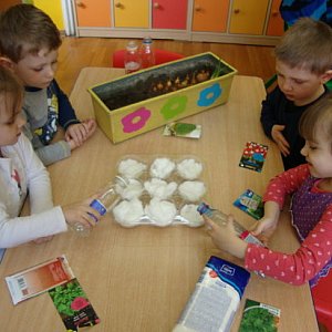 W związku z nową porą roku, dzieci z grupy „Słoneczka” z Przedszkola „Pod wierzbami” postanowiły stworzyć własny wiosenny ogródek na oknie. Dlatego w środę 15 marca przyniosły nasionka, cebulki, watę i ochoczo przystąpiły do pracy. Zapoznały się z czynnością siania i sadzenia roślin we wcześniej przygotowanych korytkach i pojemnikach, ponadto oglądały nasionka, porównywały wielkość, wąchały. Na koniec wszystko podlały i umieściły w nasłonecznionym miejscu. Teraz „Słoneczka” będą codziennie obserwować efekt swojej pracy a 21 marca z dumą zawołają „Witaj, wiosno!”.