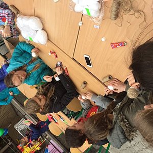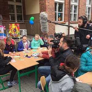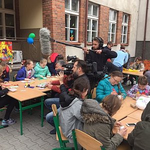 Podczas wizyty pani Julia wzięła udział w Warsztatach Wielkanocnych wspólnie z uczniami klasy piątej. Następnie opowiedziała o zawodzie aktora i udzielała odpowiedzi na pytania. Na końcu wręczyła uczniom upominek z autografem. Serdecznie pozdrawiamy panią Julię.