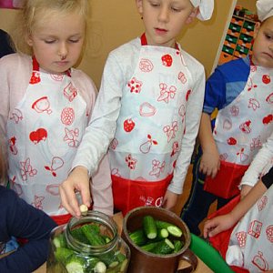 Wiedzą o tym przedszkolaki z grupy „Słoneczka” z Przedszkola „Pod wierzbami”, które w związku z tematem tygodniowym „Jesień w ogródku” w czwartek 12 października postanowiły przygotować ogórki małosolne. Dzieci zapoznały się z kolejnymi czynnościami przygotowywania zdrowych smakołyków i nie ukrywały zdziwienia, kiedy okazało się, że to takie proste! Maluchy przypomniały, że ogórki to warzywa smaczne i zdrowe, które często powinny znajdować się na naszych talerzach. Niebawem dzieci będą próbować swoje „dzieło”, bo proces fermentacji już się rozpoczął.
