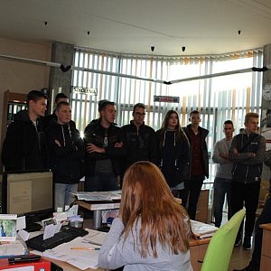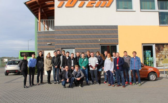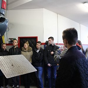 Następnie grupa udała się na plac autobusowy, gdzie wyznaczony kierowca przedstawił przyszłym logistykom sposób przygotowania autobusu do jazdy, procedury, przez które musi przejść pojazd przed wyjazdem oraz najczęstsze problemy występujące w wykonywanym przez niego zawodzie. Potem uczniowie przeszli na Okręgową Stację Kontroli Pojazdów. Tam jeden z autobusów przechodził systematyczny przegląd, a uczestnicy wycieczki dydaktycznej dzięki uprzejmości właściciela firmy TOTEM mogli wejść do kanału i zobaczyć wspomniany pojazd z dolnej perspektywy. Następnie była możliwość zaznajomienia się z ciekawostkami i regułami obowiązującymi na warsztacie blacharsko-lakierniczym oraz lakierni. Nie ominięto również innych oddziałów firmy, bez których jej funkcjonowanie byłoby wręcz niemożliwe. Mowa tu między innymi o biurze obsługi klienta, sekretariacie i księgowości. Pracownik pełniący swoje obowiązki w tym zespole musi wyróżniać się niecodzienną dokładnością, sumiennością, a także terminowością wykonywania zadań, które zostały mu powierzone przez pracodawcę.