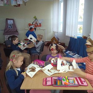 I tak, w pierwszym tygodniu uczniowie klas edukacji wczesnoszkolnej poznali mnóstwo ciekawostek na temat książek, mieli okazję zobaczyć także największą, najgrubszą, najstarszą, a także najdroższą książkę na świecie. Dzieci odwiedziły wiele kontynentów i pogłębiły swoją wiedzę o krajach i kulturach. Dzięki eksperymentom z wielu dziedzin nauki pierwszoklasiści dowiedzieli się, że nauka dzięki książce, może być też zabawą. W drugim tygodniu października bibliotekę szkolną odwiedziły dzieci z Przedszkola „Pod Wierzbami”. I tak zobaczyły kilka ciekawych miejsc na świecie: piły herbatkę w Londynie z księżną Kate, tańczyły flamenco w Hiszpanii, zajadały bagietki w Paryżu, poznały greckie przysmaki oraz japońskie zwyczaje a nawet zawędrowały do Afryki na spotkanie z egzotyką. Dzięki temu spotkaniu przedszkolaki dowiedziały się wielu ciekawych wiadomości o świecie. W kolejnym tygodniu wystawę odwiedzili uczniowie klasy IVa. Mogli podziwiać swoich starszych kolegów, koleżanki z klasy IIIa w tradycyjnych charakterystycznych dla poszczególnych krajów strojach. Następny tydzień października upłynął w bibliotece szkolnej pod hasłem: „Pieski w literaturze i bajce”. Dżońcio, Pluto a nawet Psi Patrol …. te i wiele innych literackich oraz bajkowych psiaków wspominali pierwszoklasiści i dzieci z przedszkola „Pod Wierzbami” Na zakończenie spotkania przy muzyce o swoich pupilach dzieci stworzyły słodkie pieski z papieru.
