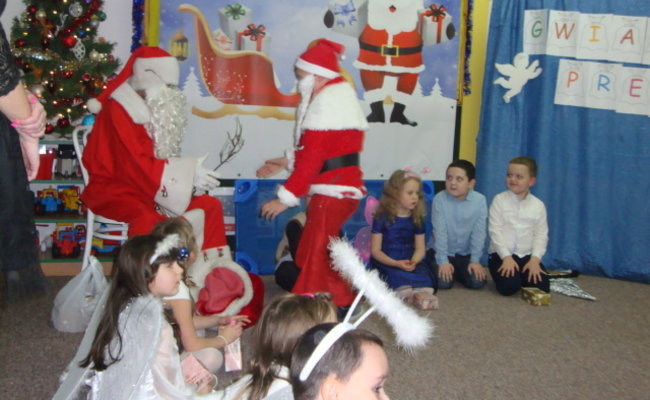 Podtrzymywanie tradycji bożonarodzeniowych wpisało się w kanon uroczystości, które odbywają się co roku w Przedszkolu „Pod wierzbami”. Dnia 19 grudnia po południu dzieci z grupy„Słoneczka” zaprosiły swoich rodziców, aby zaprezentować przedstawienie pt.: „Gwiazdkowy prezent”. Przebrane w starannie dobrane stroje odgrywały swoje role jak prawdziwi aktorzy – tańczyły, grały na instrumentach, śpiewały również w języku angielskim doskonale się przy tym bawiąc. Nie zabrakło również dostojnego gościa z długą, białą brodą i workiem prezentów dla dzieci, który w tym roku przyjechał rowerem ze względu na brak śniegu. Gwiazdor porozmawiał z każdym – jednych chwalił, innym dawał przestrogi, bo przecież on wszystko widzi i wszystko wie.