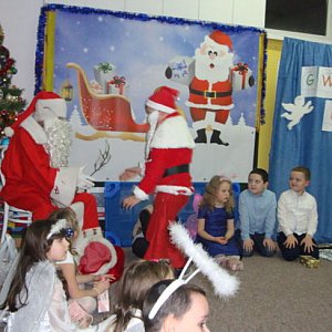 Na zakończenie rodzice wspólnie z dziećmi zatańczyli układ do piosenki „Jingle bells”. Radosna atmosfera udzieliła się każdemu, dlatego wszyscy żegnali się w pogodnych nastrojach życząc sobie „Wesołych świąt”.