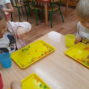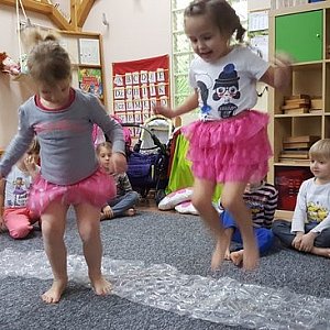 Dzieci z Przedszkola nr 7 „Janka Wędrowniczka” systematycznie uczestniczą w zabawach z elementami integracji sensorycznej, które rozwijają zmysł: wzroku, słuchu, dotyku, węchu, smaku, kinestetyczny i równowagi. Zabawy te wspierają aktywności dziecka, podnoszą poziom inteligencji sensorycznej oraz rozwijają procesy poznawcze.