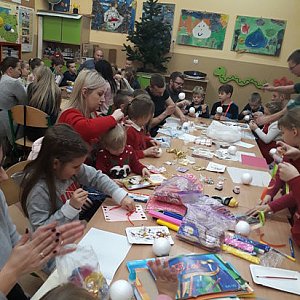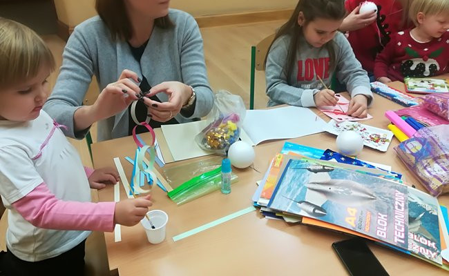 Zarówno dzieci jak i rodzice bardzo zaangażowali się w wykonywane prace. Była to fantastyczna możliwość spędzenia wspólnie czasu i poczucia już świątecznego klimatu.