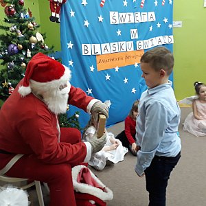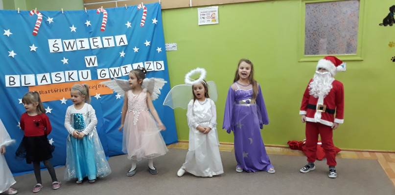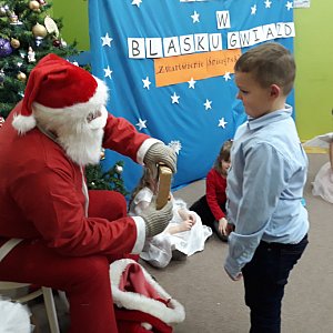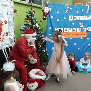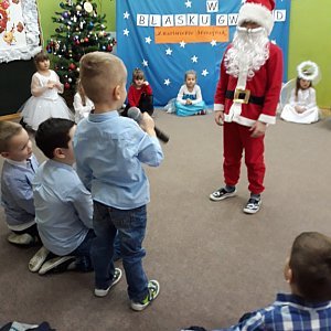 Dlatego w czwartek 20 grudnia dzieci z Przedszkola „Pod wierzbami” z grupy Pszczółki w pięknych strojach wystąpiły w przedstawieniu pt.: „Zmartwienie śnieżynek”. Była to inscenizacja słowno – muzyczna, połączona z tańcami, grą na instrumentach i śpiewaniem w języku angielskim zakończona odwiedzinami świętego Mikołaja. Gość w czerwonym stroju z wielkim workiem prezentów wręczył dzieciom wspaniałe upominki. Spotkanie zakończyło się wesoło wspólną zabawą ruchową z rodzicami.