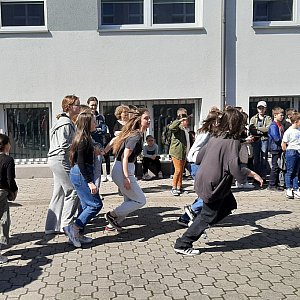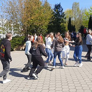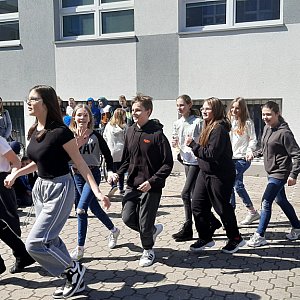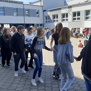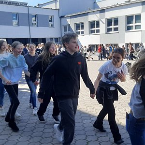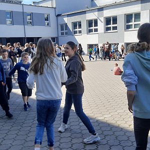 Samorząd uczniowski zadecydował o obchodach Dnia Tańca. Na dzień ten wybrali czwartek 28 kwietnia br. Podczas długiej przerwy uczniowie wyszli na boisko. Starsi zaprezentowali tzw. belgijkę i potrwali do tańca pozostałych. Razem zaprezentowali skoczne kroki do utworu Laïs. Właśnie ta piosenka zespołu Laïs w stylu folkowym najczęściej wykorzystywana jest do tańca integracyjnego.