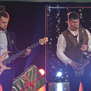 A tu na po raz pierwszy na jednej scenie i w takim składzie (!!!) spotkały się wyjątkowe artystyczne indywidualności! Na pianinie: Mariusz Śląski, na perkusji – Maciej Walewski, na gitarze – Filip Maciejewski i na saksofonie Jarek Wiśniewski! Do tego męskiego muzycznego kwartetu dołączył kolejny – kobiecy: Anita Szymanowska, Mariola Kaźmierczak, Patrycja Cicha i Ania Kaczmarek! Ta artystyczna mieszanka wybrzmiała w kolędowo-świątecznym repertuarze zbierając gromkie owacje uczestników koncertu.