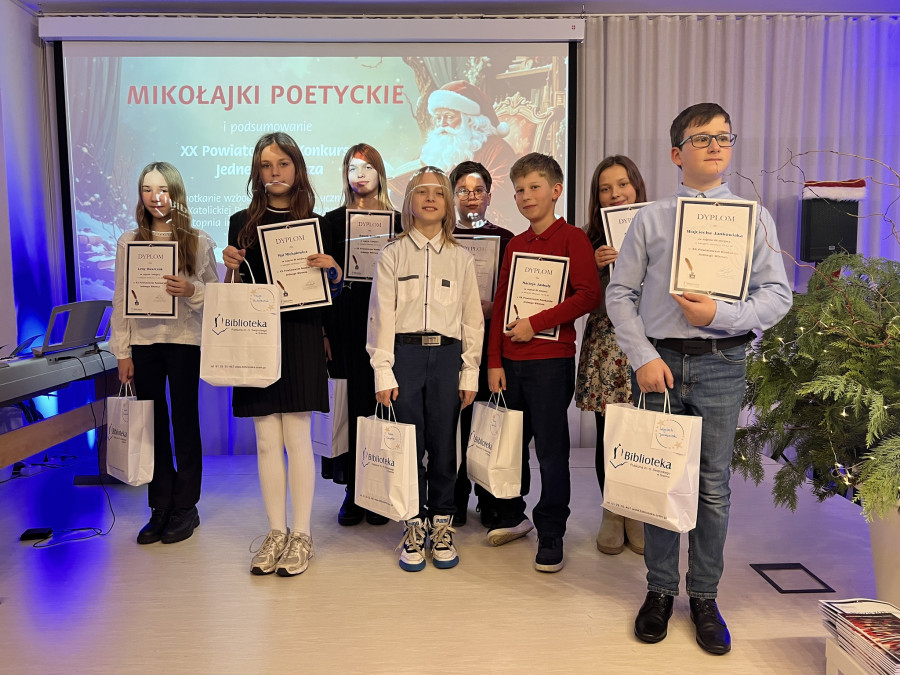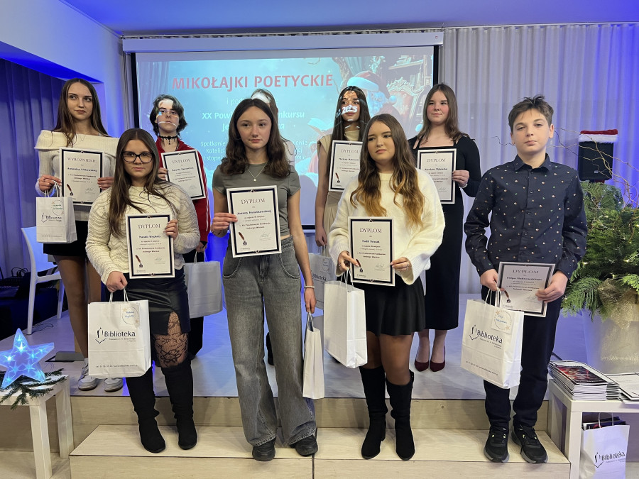Biblioteka Publiczna w Śremie stała się 8 grudnia sceną dla corocznego, ale w tym roku wyjątkowo jubileuszowego wydarzenia: Mikołajek Poetyckich 2025. Była to uroczysta okazja do podsumowania XX Powiatowego Konkursu Jednego Wiersza – prawdziwego święta młodej twórczości, które od dwóch dekad inspiruje i łączy mieszkańców powiatu.