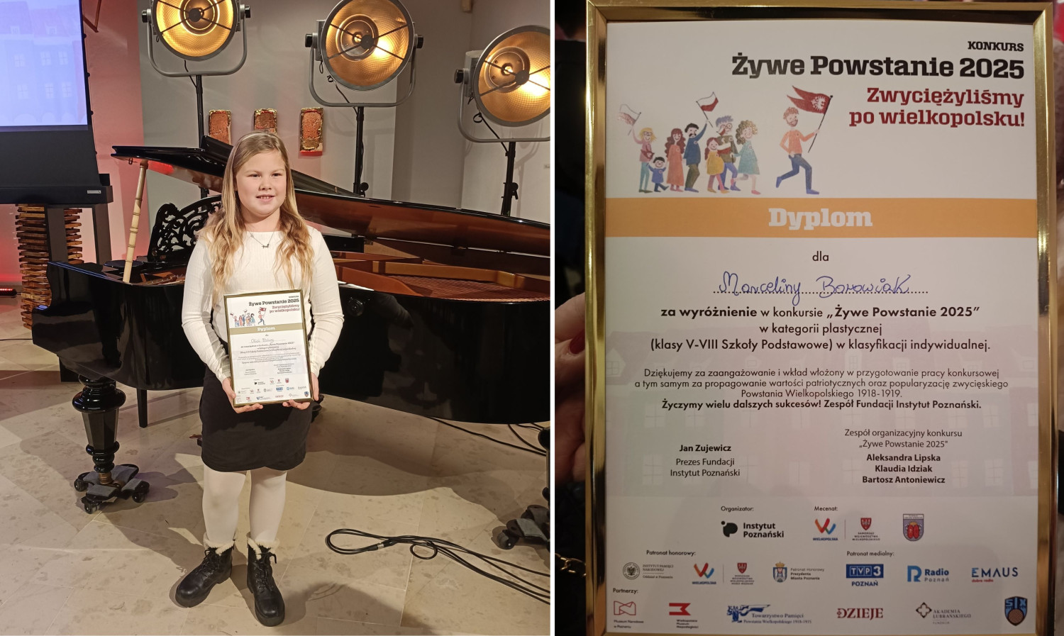 W kategorii klas I-IV zwyciężyła Oliwia Misiura ze szkoły w Iłówcu, która przygotowała plastyczną ilustrację o życiu Pelagii Gdeczyk – fotografce z Gniezna- która wspierała zryw powstańczy- dbając o ich wyżywienie i wdając ciepłe posiłki na dworcu kolejowym w swym mieście.. Vanessa Hamulska z tej samej szkoły zajęła III miejsce w tej samej kategorii wiekowej, a w kategorii klas V-VIII wyróżnienie otrzymała Marcelina Borowiak z klasy V ze szkoły w Manieczkach. Uczennice wzięły udział w uroczystej gali, która miała miejsce w Akademii Lubańskiego w Poznaniu i zgromadziła wiele osób wspierających wydarzenie i w nim uczestniczących.. Wydarzenie to oprawione muzyką, rozmowami i świąteczną atmosferą na długo zapadnie w pamięć laureatów,