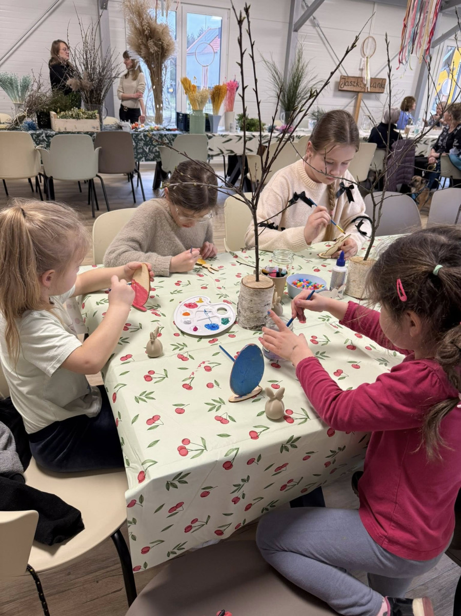 Po części oficjalnej świetlica wiejska w Jaszkowie zmieniła się w wielką pracownię artystyczną. Warsztaty wielkanocne przyciągnęły zarówno najmłodszych, jak i starszych mieszkańców. Pod czujnym okiem Joli Dopierały, która w przystępny sposób dzieliła się swoją wiedzą, powstawały świąteczne arcydzieła: