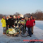 Choć tory żuzlowe nieczynne, to dla chętnych nic trudnego. Jak zamarzły jeziora, stawy, tak amatorzy speedway'a postanowili uruchomić żużlowe motocykle i jazda na zamarznięte akweny.