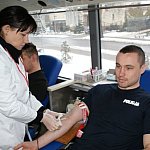 12,45 l krwi oddali wczoraj honorowi dawcy w ?Mobilnym punkcie poboru krwi?, który przez 6 godzin stał przed Komendą Powiatową Policji w Śremie. Wśród dawców byli policjanci na czele z głównym inicjatorem przedsięwzięcia sierż. szt. Piotrem Grzelczykiem Kierownikiem Rewirów Dzielnicowych oraz osoby cywilne