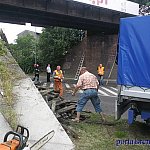 We wtorkowe (22.07) południe strażacy PSP w Śremie brali udział w demontażu kładki przy wiadukcie kolejowym przebiegającym nad ulicą Kilińskiego.