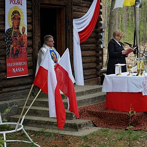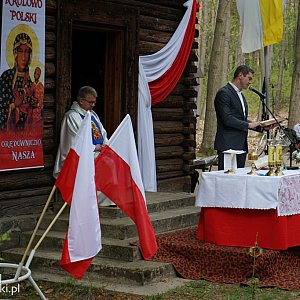 Mszę świętą odprawił proboszcz parafii w Rąbinku ks. Ryszard Jankowski. W okolicznościowym słowie nawiązał do czytania z Apokalipsy do św. Jana. Jak smok był zagrożeniem do rodzącej kiedyś dziecko Niewiasty (red. Maryi) tak Polska w swej historii również wiele razy doświadczała zagrożeń (smoka) np. I, II wojna światowa, zabory, faszyzm, komunizm a teraz to co zagraża światu – putinizm.