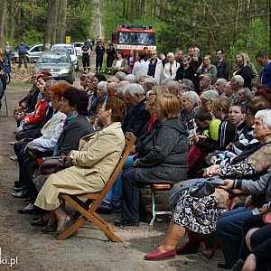 Piękna pogoda i długa przerwa spowodowana pandemią zachęciły wielu by udać się dawnym zwyczajem przed kaplicę do lasu w Rąbiniu.