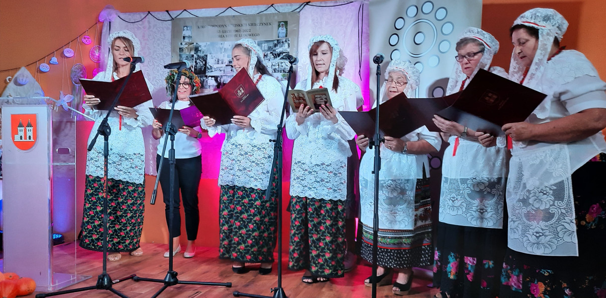 W czasie jubileuszowej imprezy nie mogło zabraknąć ludowych przyśpiewek i wystawy rękodzieła.