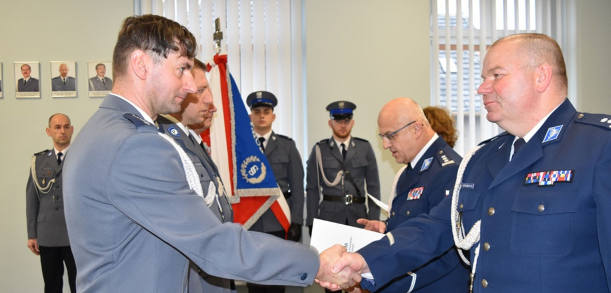Szef śremskiej Policji insp. Sławomir Jądrzak wraz ze swoim Zastępcą mł. insp. Konradem Bartłomiejczakiem, podziękowali i wręczyli nagrody wymienionym funkcjonariuszom, którzy blisko 12 lat wzorowo reprezentowali Komendę Powiatową Policji w Śremie podczas uroczystości odbywających się na terenie powiatu śremskiego i garnizonu wielkopolskiego.