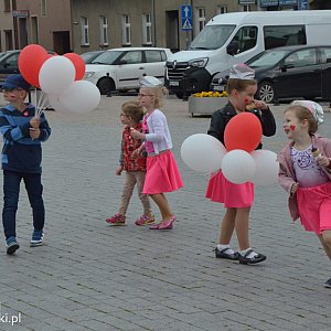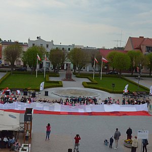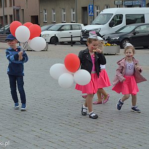 Kolory polskiej flagi dominowały dzisiaj na ksiąskim rynku. Zgodnie z tradycją odbyło się uroczyste podniesienie flagi na maszt przez poczet flagowy reprezentowany przez OSP Książ Wlkp.: Julię Towarek, Dawida Kuderczaka i Grzegorza Przybylaka. O oprawę muzyczną wydarzenia zadbała Orkiestra Dęta na czele z Romanem Ptakiem, a w kilku układach tanecznych zaprezentowały się dwie grupy Mażoretek „Błysk”, którym towarzyszyła instruktorka Aneta Ptak. Opowiedziała ona również o ich ostatnich sukcesach podczas XI Otwartych Mistrzostw Polski Zachodniej Tańca Mażoretkowego, które miały miejsce 22 kwietnia w Górze.