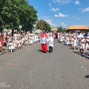 Msza św. W parafii pod wezwaniem Najświętszego Serca Jezusa została odprawiona na placu przy Spółdzielni Mieszkaniowej, natomiast procesja do czterech ołtarzy przeszła ulicami: Roweckiego, Okulickiego, Komorowskiego i Chłapowskiego.