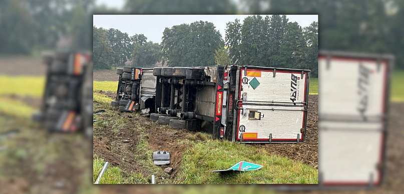 Incydent na trasie Śrem - Gostyń. Ciężarówka wypadła z drogi