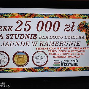 Z pewnością to wielki dzień dla sierocińca w Jaunde w Kamerunie. Został przekazany symboliczny czek na budowę studni. Czek odebrał ks. Darek który jest obecnie w Polsce.- wspomniał Wojciech Szolek prowadzący czadowy Ekonom.