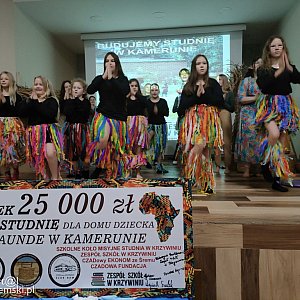 Dzisiaj odbył się spektakl teatralny na motywach "Opowieści szeptanych przez wiatr" Paulo Valente w wykonaniu uczniów Zespołu Szkół w Krzywiniu i spotkanie z Ks. Dariuszem z Kamerunu. Celem była zbiórka pieniędzy na budowę studni w Kamarunie.