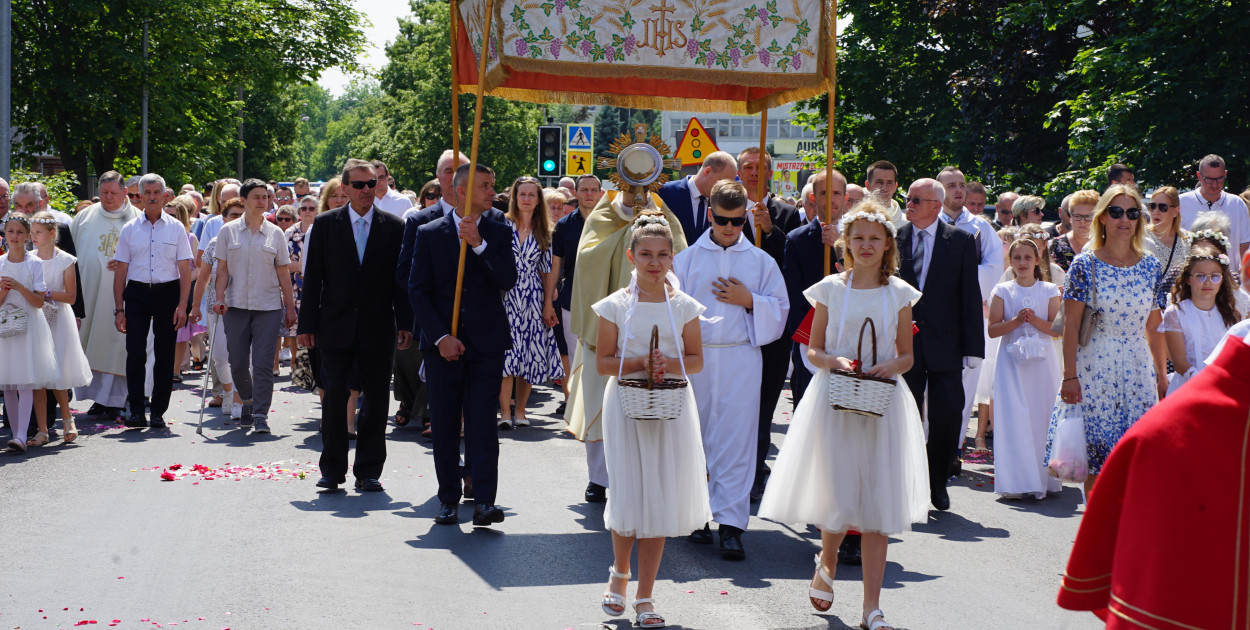 Odejdźmy od rutyny, odkryjmy sens obecności Jezusa w Eucharystii. To nie pamiątka, a żywy Bóg pośród nas – mówił kaznodzieja w czasie Mszy polowej na placu koło Spółdzielni Mieszkaniowej, skąd później wyruszyła procesja.