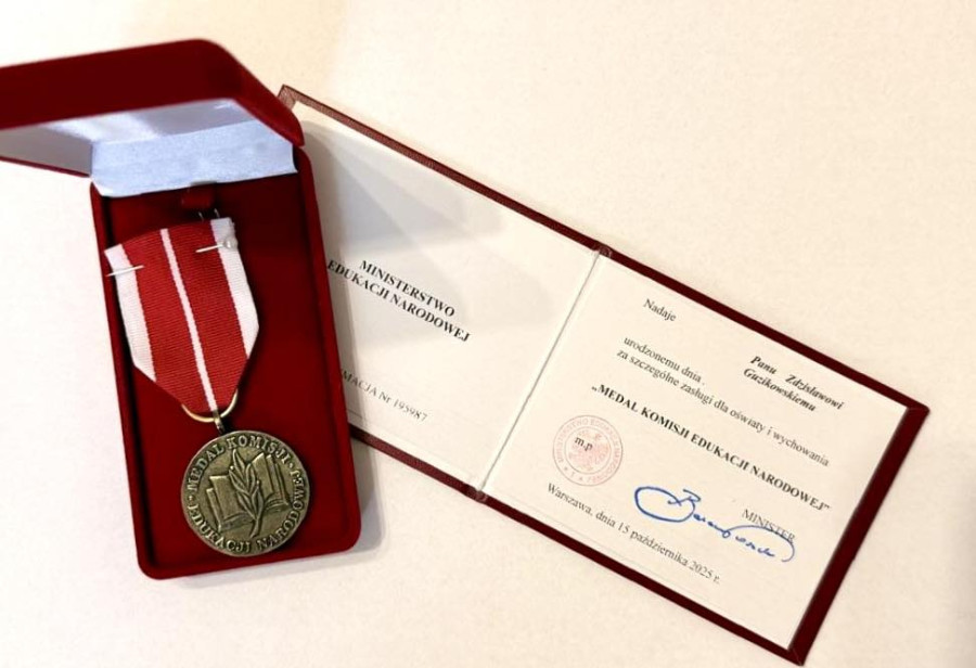 Dr Zdzisław Guzikowski (ZSR w Grzybnie) otrzymał Medal Komisji Edukacji Narodowej – jedno z najważniejszych wyróżnień w polskiej oświacie. To nagroda za jego wieloletnią pracę, zaangażowanie w rozwój szkoły oraz wkład w wychowanie wielu pokoleń uczniów.