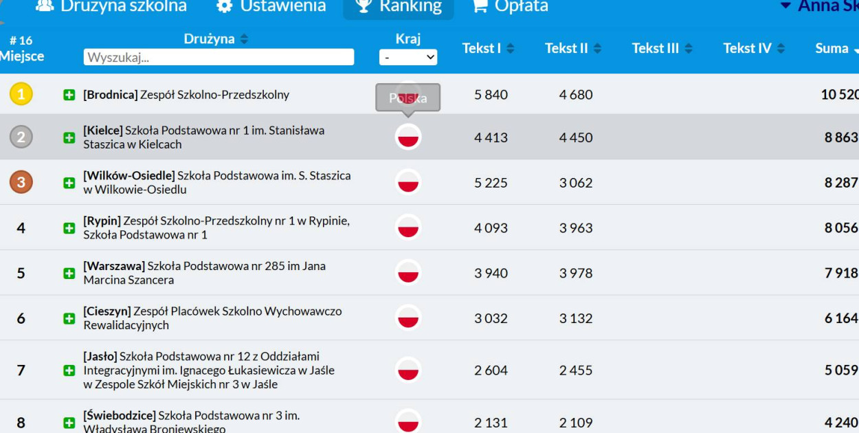 Szkoła Podstawowa im. Hymnu Polskiego w Brodnicy udowodniła, że zaangażowanie i determinacja uczniów mogą prowadzić do spektakularnych rezultatów. Po pierwszym etapie XII edycji Klawiaturowego Wyzwania placówka uplasowała się na pierwszym miejscu w kraju, wyprzedzając dziesiątki szkół z całej Polski.