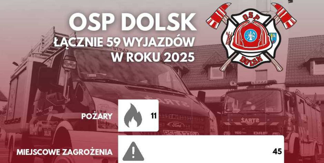 Strażacy ochotnicy z Dolska podsumowali minione dwanaście miesięcy. Rok 2025 był dla nich czasem wielkich wyzwań – od ratowania mienia i życia, przez ogromne akcje charytatywne, aż po rekordowy rozwój młodzieżowych drużyn pożarniczych.