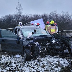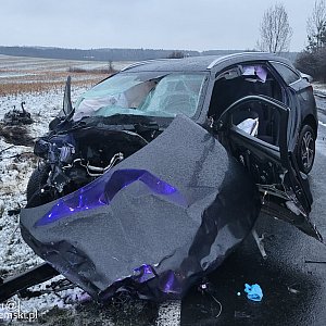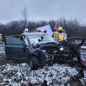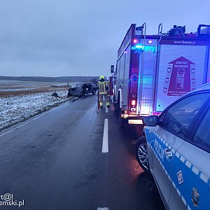Przed godziną 17 na drodze Dolsk – Borek Wlkp. doszło do wypadku, w którym uczestniczyły trzy pojazdy. Według relacji kierującej ciągnikiem siodłowym z ładunkiem paliwa, kierowca samochodu osobowego marki Hyundai i30 zjechał na lewy pas drogi uderzając w bok ciągnika siodłowego a następnie zderzył się z busem.