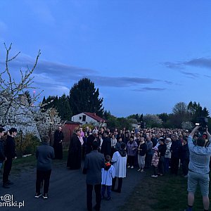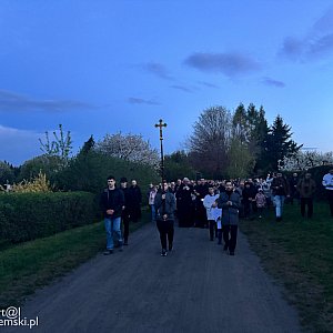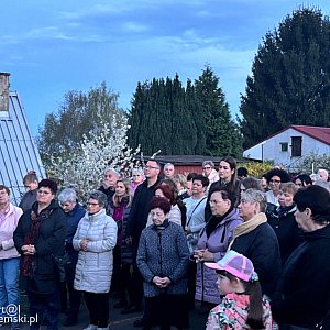 Zbiórka rozpoczęła się jeszcze przed świtem, o 4:45. Choć wielu dopiero wtedy przewraca się na drugi bok, przed kościołem zebrała się ogromna wspólnota – starsi, młodsi, całe rodziny i dzieci. O godzinie 5:05 procesja wyruszyła w ciszy i skupieniu w kierunku jeziora. Rozważania do poszczególnych stacji czytał proboszcz parafii, ks. Ryszard Adamczak. Jego słowa prowadziły uczestników przez kolejne etapy Męki Pańskiej, skłaniając do osobistej refleksji. Nabożeństwo było przeplatane pieśniami pasyjnymi, choć wiele chwil upływało w milczeniu – szczególnie, gdy grupa dotarła nad jezioro. Tam, przy śpiewie ptaków i pierwszym brzasku dnia, modlitwa nabierała szczególnego wymiaru. Na zakończenie ks. Proboszcz podziękował wszystkim za wspólną modlitwę i zaprosił do dalszego przeżywania Triduum Paschalnego w parafii. Gdy uczestnicy kierowali się w drogę powrotną, zaczął padać lekki deszcz – jakby symboliczne dopełnienie wielkopiątkowej ciszy i zadumy.