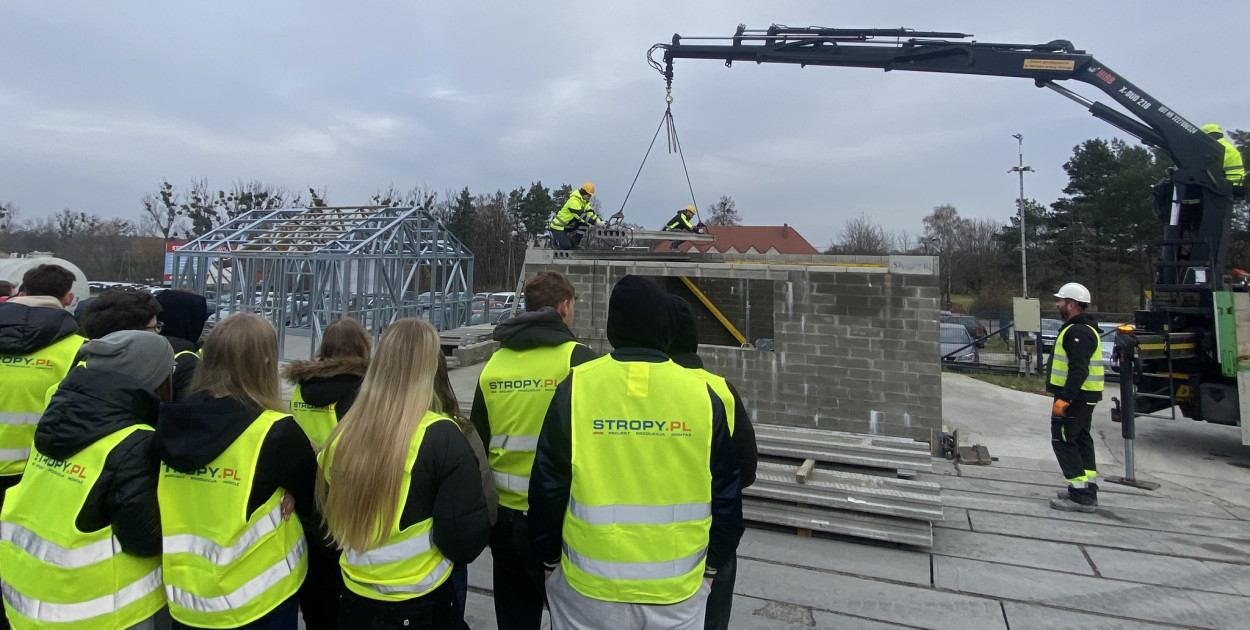Podczas wizyty młodzież uczestniczyła w szkoleniu praktycznym dotyczącym montażu stropów panelowych. Uczniowie krok po kroku obserwowali, jak przygotowuje się elementy, jak prawidłowo je układa, a także jak dba się o bezpieczeństwo i parametry techniczne całego systemu. Była to doskonała okazja, by zetknąć się z nowoczesnymi rozwiązaniami używanymi na współczesnych budowach.