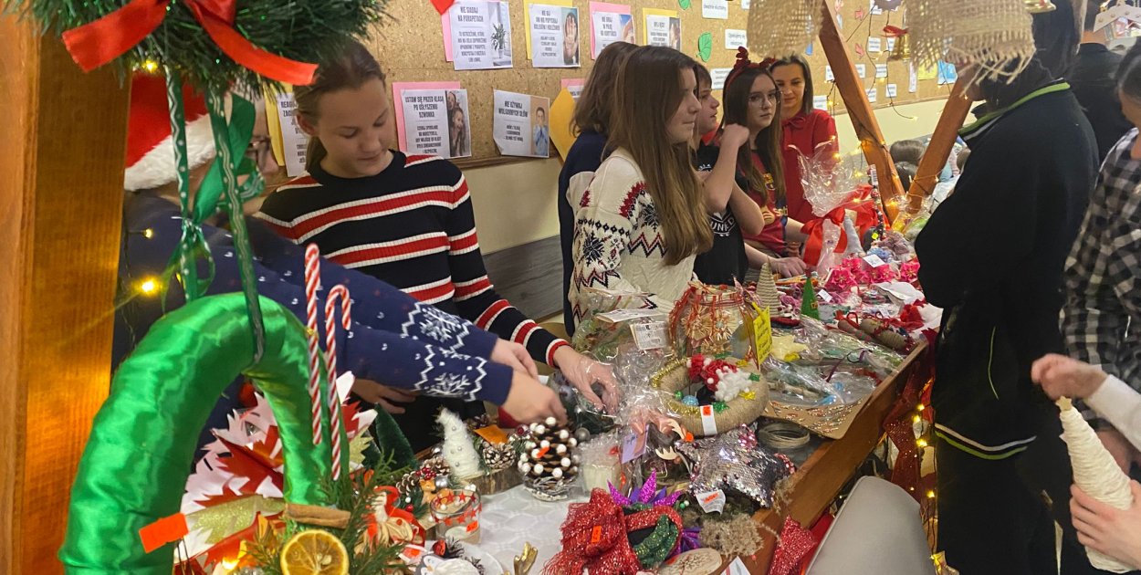 Kolorowe stoiska, przygotowane przez uczniów, nauczycieli i rodziców, przyciągały zarówno najmłodszych, jak i dorosłych. Można było znaleźć na nich: pachnące pierniki, ozdoby świąteczne tworzone metodą rękodzieła, gotowe prezenty idealne pod choinkę, wyjątkowe prace plastyczne i rękodzielnicze, kartki świąteczne i ozdoby choinkowe. Był „Kot w worku”, który dostarczył sporo emocji oraz scenki fotograficzne i fotobudki pozwalające zachować świąteczne wspomnienia. Na najmłodszych czekała też wyjątkowa atrakcja – spotkanie z Mikołajem, który z uśmiechem rozdawał słodkości i pozował do zdjęć!
