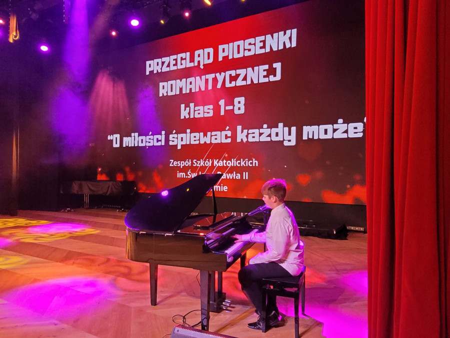 „O miłości śpiewać każdy może” – pod takim hasłem odbył się wyjątkowy przegląd piosenki, który zgromadził młodych wokalistów z całej gminy Śrem. Organizatorem wydarzenia był Zespół Szkół Katolickich im. św. Jana Pawła II w Śremie.