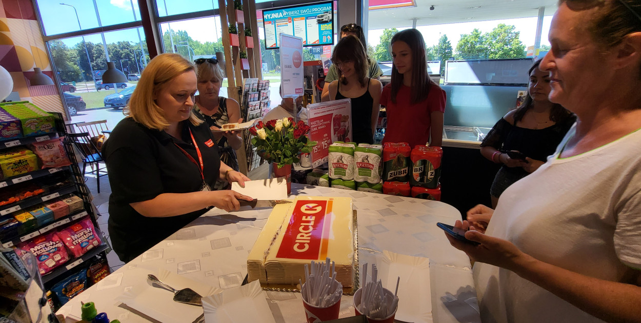 Dzisiaj w samo południe na Circle K. w Śremie odbyło się uroczyste otwarcie odmienionej stacji. Przed wejściem miało miejsce symboliczne przecięcie czerwonej wstęgi. Po tym wszyscy zostali zaproszeni do środka na słodki poczęstunek. Na środku lokalu stanął okolicznościowy tort.