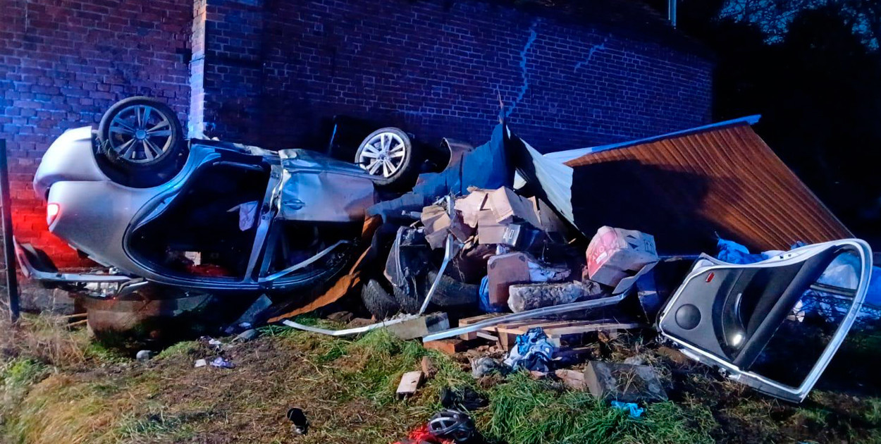 W niedzielę ok. 17:30 w Wonieściu 44-letni mieszkaniec gminy Śmigiel, kierując seatem, nie dostosował prędkości do warunków. Na łuku drogi stracił panowanie nad autem, zjechał z jezdni, uderzył w ogrodzenie, dachował i zatrzymał się na ścianie budynku gospodarczego.