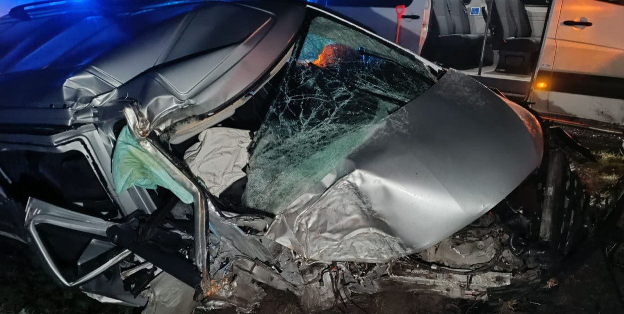 Kierowca Mercedesa, chcąc uniknąć bezpośredniego zderzenia ze zwierzęciem na łuku drogi, wykonał gwałtowny manewr obronny. Niestety, w wyniku tego ruchu zjechał na pobocze, a następnie z dużą siłą uderzył w przydrożne drzewo.