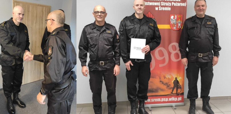 Dzisiaj Komendant Powiatowy PSP w Śremie w obecności Naczelnika Wydziału Operacyjno - Szkoleniowego KP PSP w Śremie wręczył pisemne podziękowanie funkcjonariuszowi. Jesteśmy dumni, że w szeregach naszej formacji służy człowiek o tak wielkim sercu i poczuciu obowiązku. Gratulujemy- powiedział st.kpt. Tomasz Kierzek
