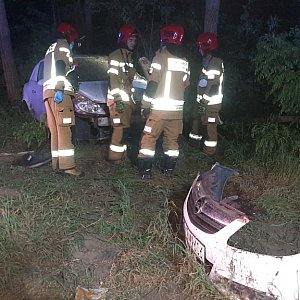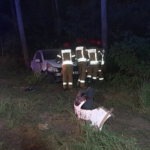 Według zeznań kierującego, przyczyną zdarzenia było pojawienie się na drodze zwierzyny. Mimo manewru ominięcia przeszkody kierujący wpadł w poślizg, zjechał z drogi uderzając w drzewa. Potrzebna była pomoc medyczna. Kierujący został przewieziony do szpitala w Śremie.